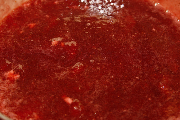 Some strawberries~ BC's recipe calls for 1.5 pints of strawberries, but I found that to be too LITTLE. I think this is about 2.5 pints.